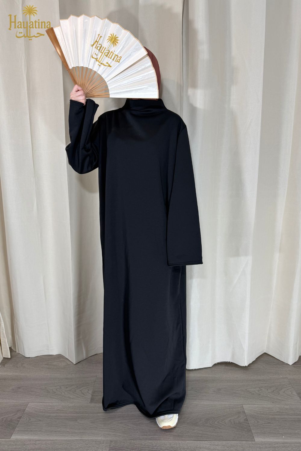 Robe longue à col roulé, coupe ample et matière douce, idéale pour un look pudique, confortable et élégant en hiver.